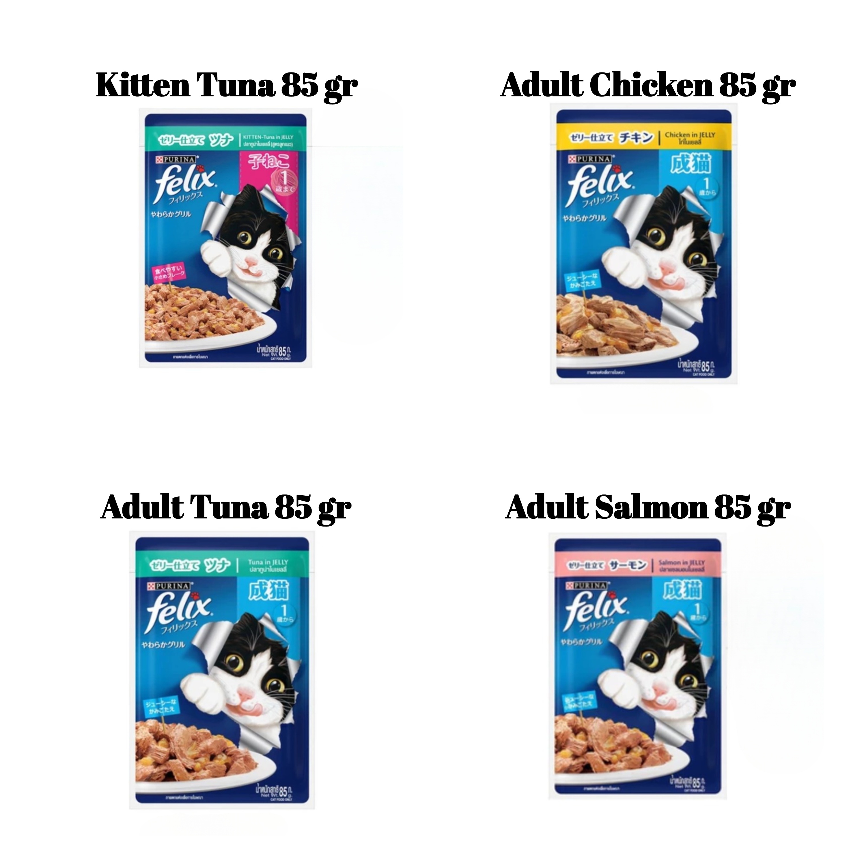 Makanan Kucing Basah Felix Pouch 85gr Adult Kitten Tuna Salmon Chicken (Kitten Tuna)