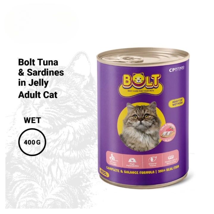 Bolt Kaleng 400gr Makanan Kucing Basah Adult Mother And Kitten Wet Can (Tuna Sardine)